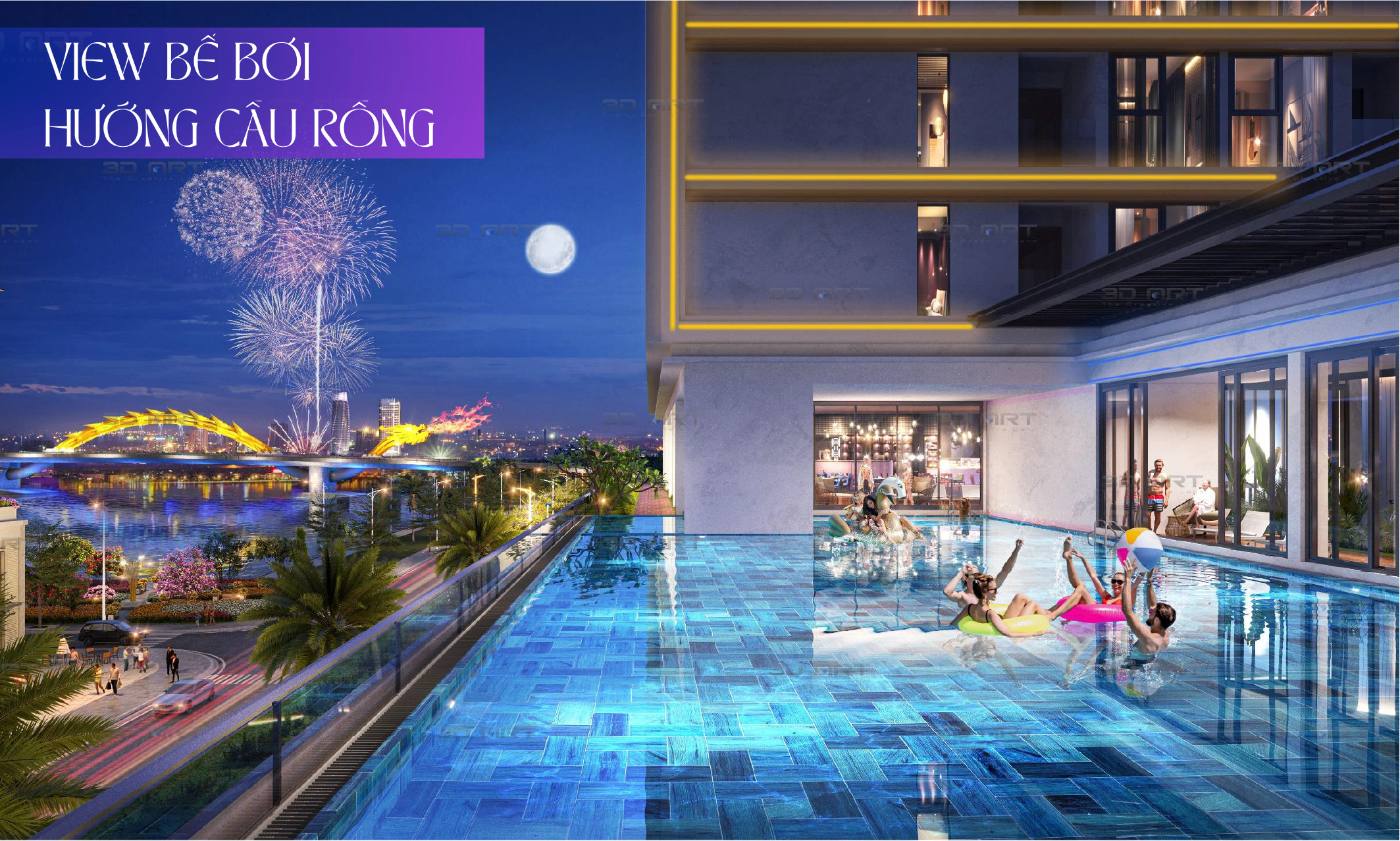 Vị trí đắc địa: Nằm bên bờ sông Hàn, giữa hai cây cầu biểu tượng: Cầu Rồng (cách 350m đi bộ) và cầu Trần Thị Lý (cách 1,5km).